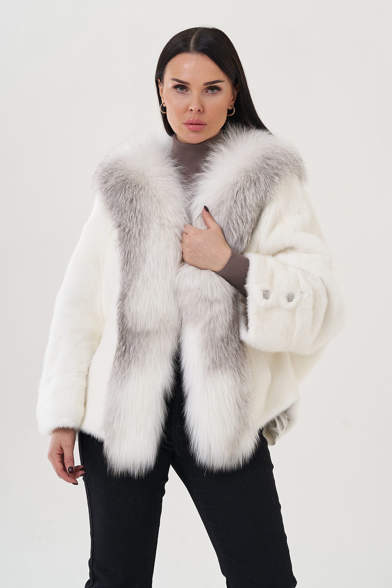 Тип ворота - V - образный воротник , отделка песец